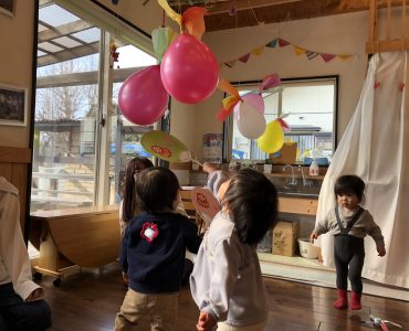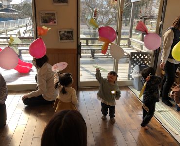 子育て支援情報発信ページ 令和7年度 第11回 ぽかぽかひろばの様子「ふゆのあそびをたのしもう」 2026.03.05 categoryぽかぽか広場 1月19日は、ぽかぽかひろばでした。 大勢の方にご参加いただきましてありがとうございました。 ふうせんはねつき、届くかな? うちわで、ぽーんぽんっ だるまつみ・こままわし、くるくるまわって楽しいね 大きくなったかな? 大型絵本も楽しかったね お正月遊びを取り入れました。みなさん楽しんでいただけたでしょうか? ありがとうございました。
