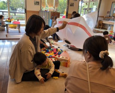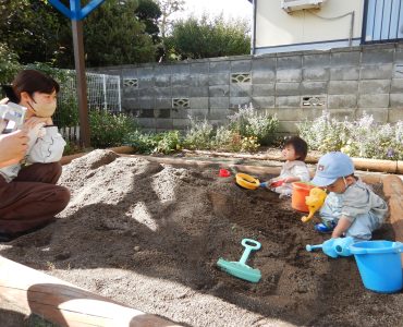 おひさまハウスでは、ゆったり遊んだり、外の砂場で砂遊びも楽しみました。
