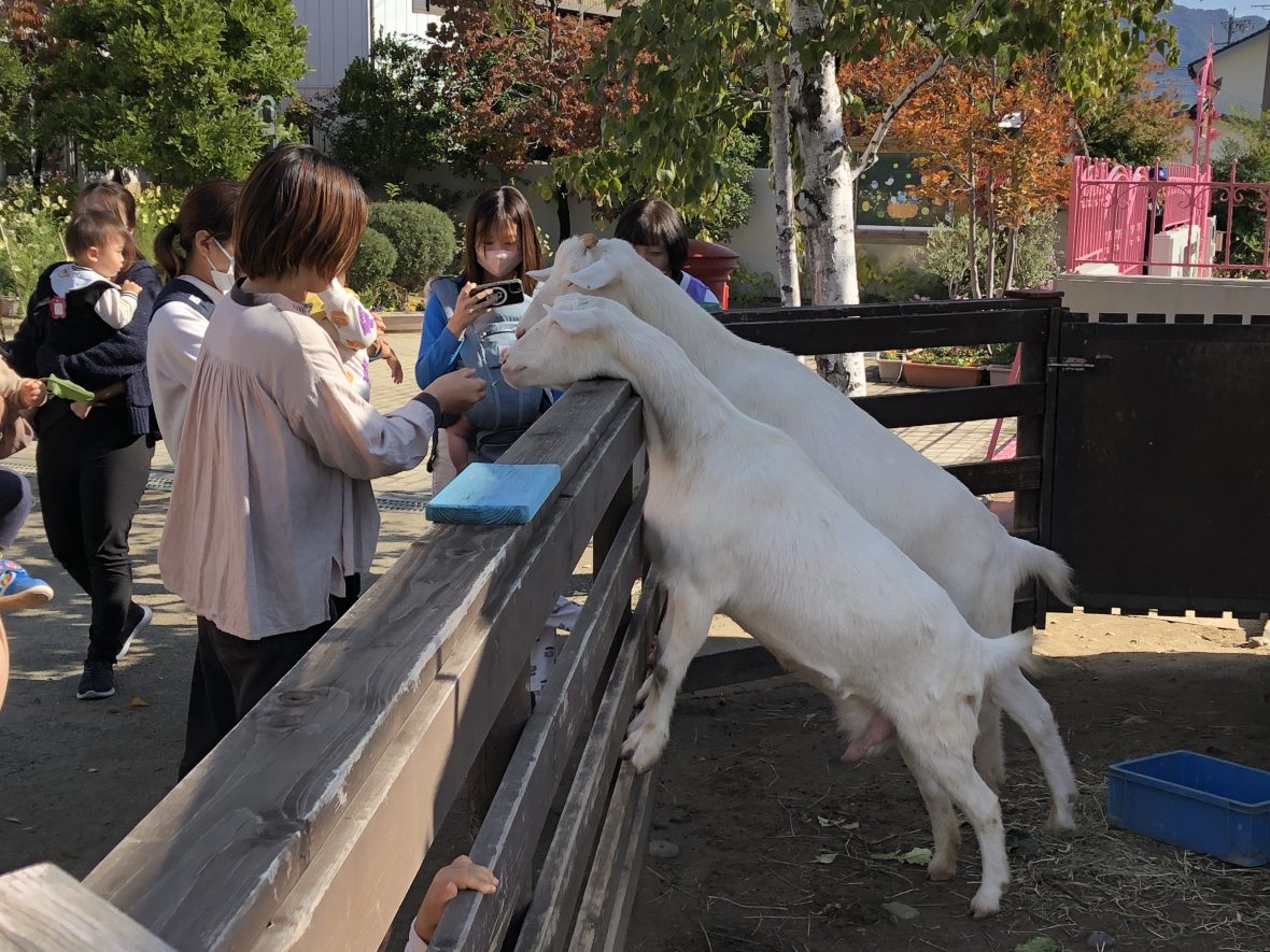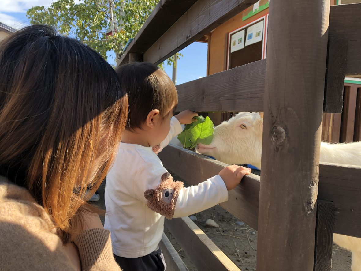 お腹がいっぱいだったのか、食べるのがゆっくりなヤギさん。お子さんたちもゆっくりエサをあげる事が出来ました。
