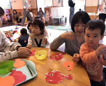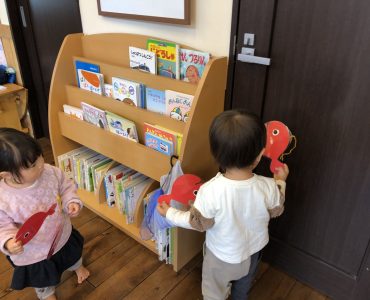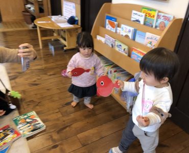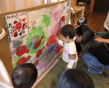 「きんぎょがにげた」の大型絵本を楽しみました。お部屋の中にもきんぎょが逃げちゃった!!