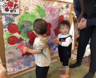 みんなで見つけて大きな水槽に入れてあげよう。どこに赤いきんぎょがかくれているかな?!