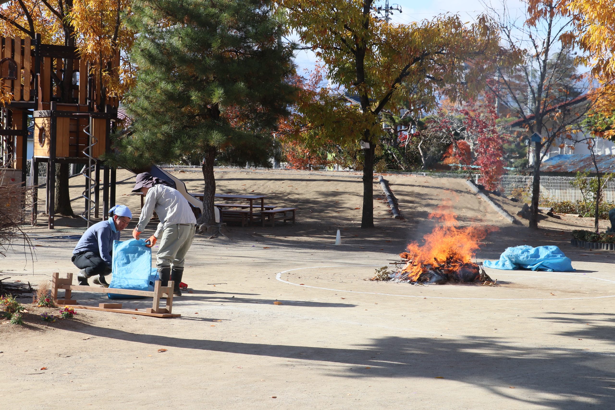 園庭では、唐木沢さん、笹井さん、りく先生が中心に準備を進めてくださっていました。