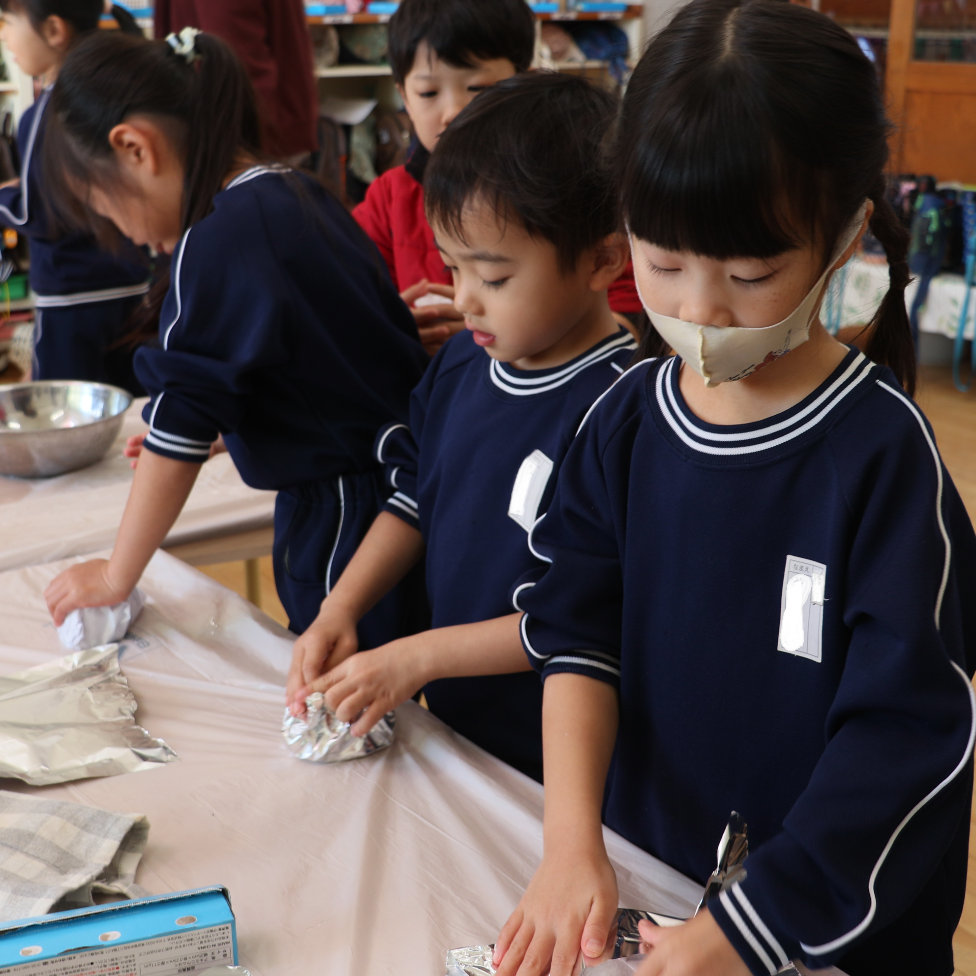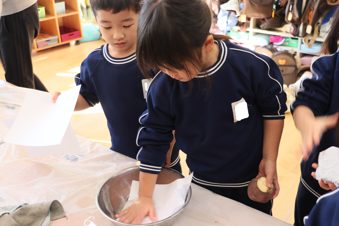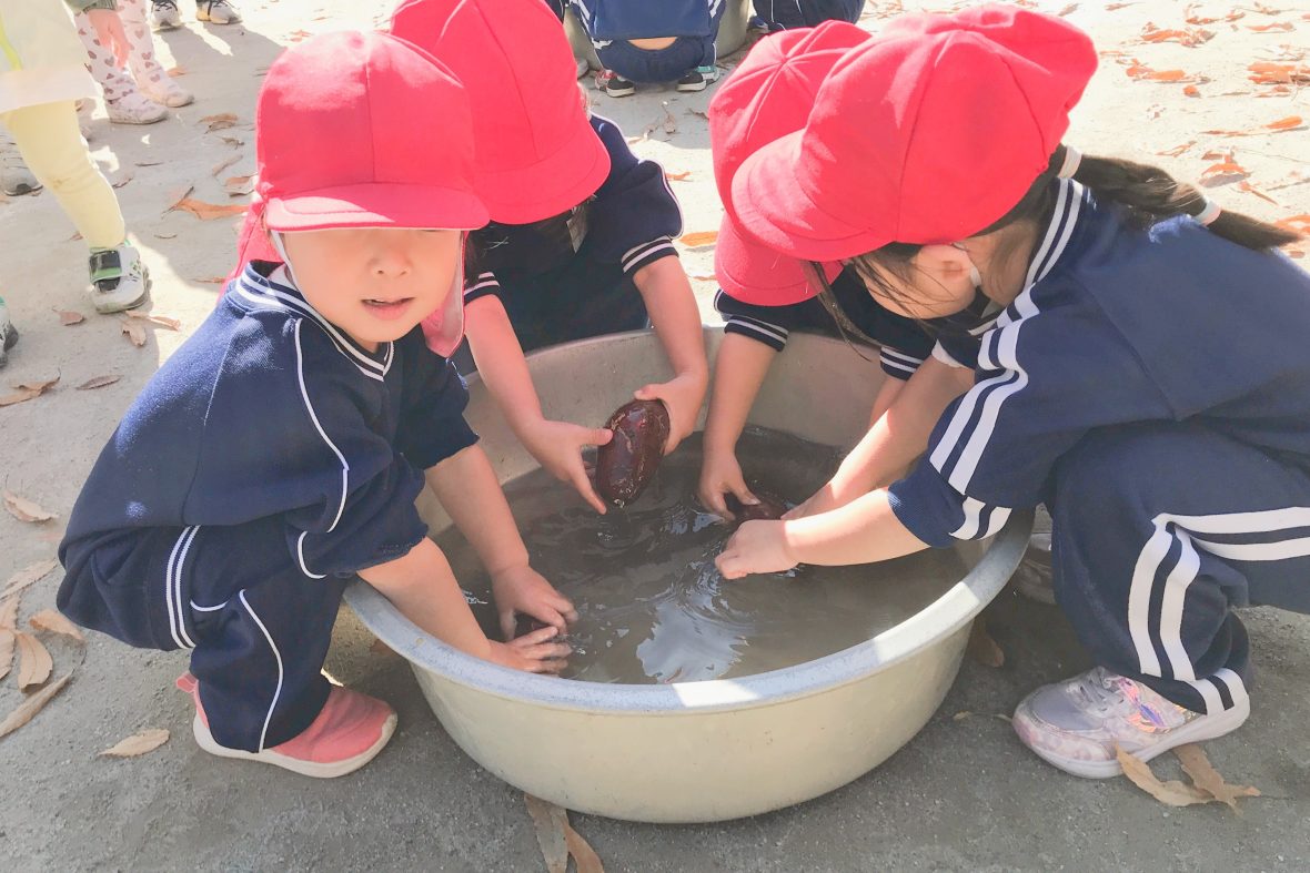 子どもたちは、前日までにさつまいもを洗って準備万端!