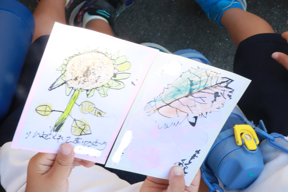 円福幼稚園では、子どもたちが作った作品を絵はがきにしておじいちゃん、おばあちゃんへ『大好きだよ』『ありがとう』の気持ちを届けています。