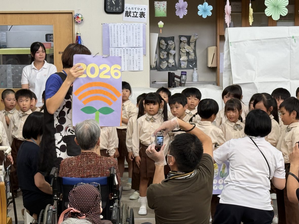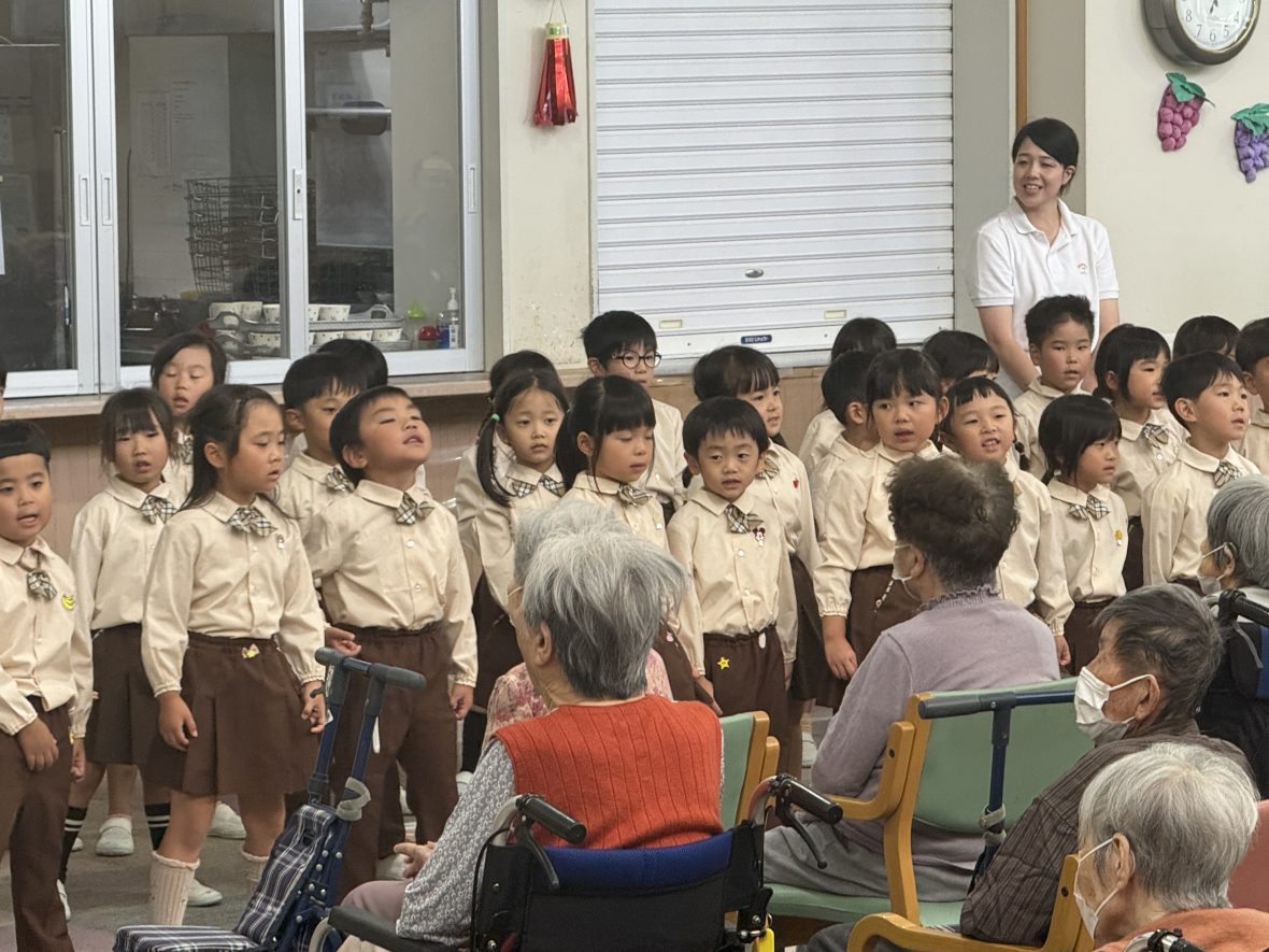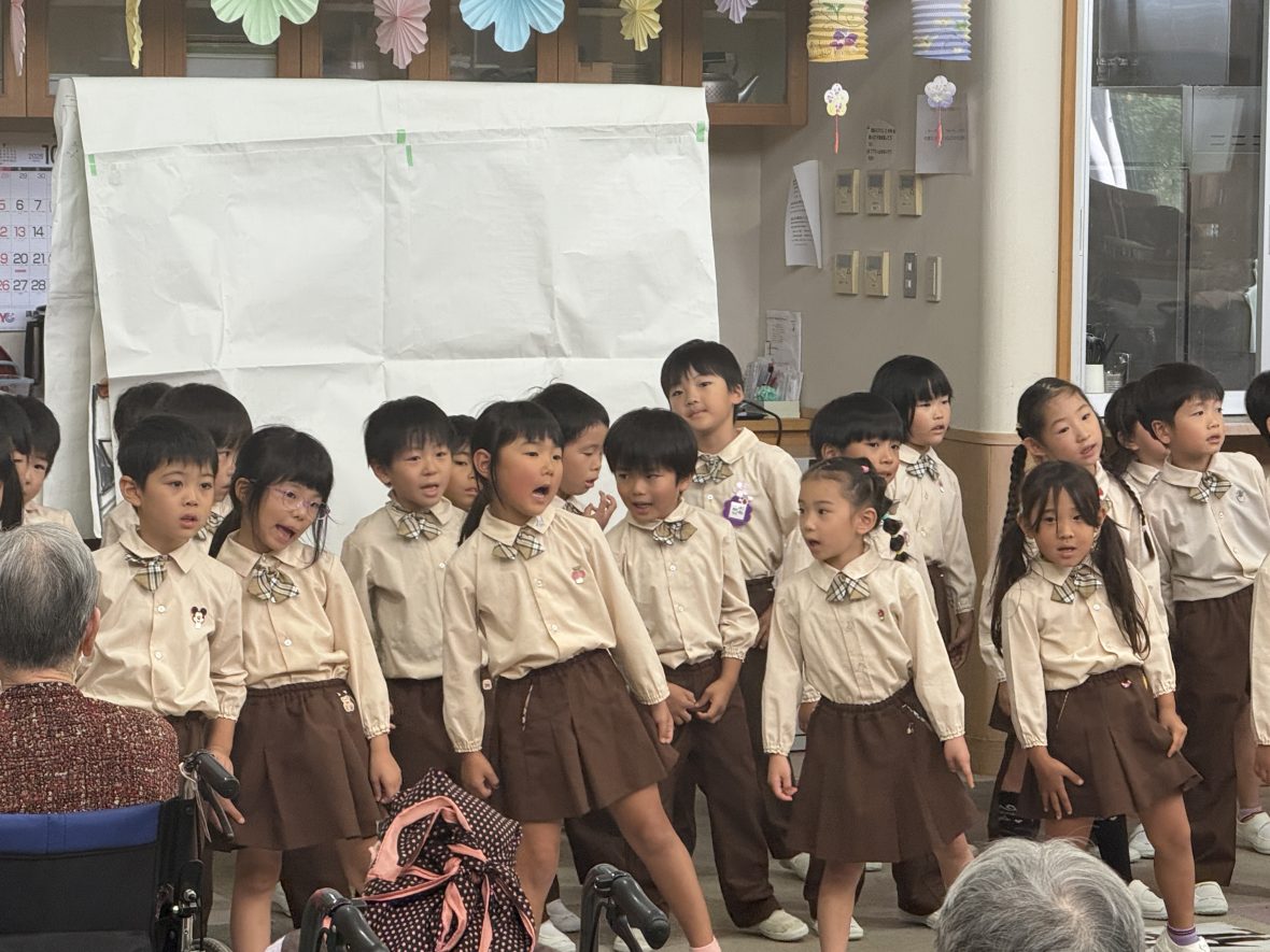 10月8日に松代にある老人ホーム尚和寮に年長児が歌を届けに行きました。