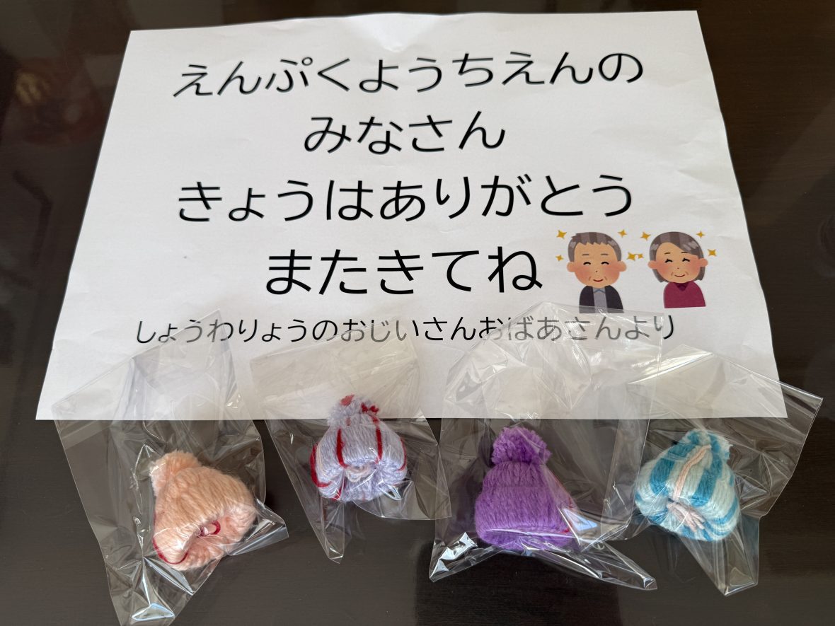 尚和寮の方が子どもたち一人一人に作って下さった帽子とメッセージをいただきました。子どもたちにとっても貴重な経験になりました。ありがとうございました。